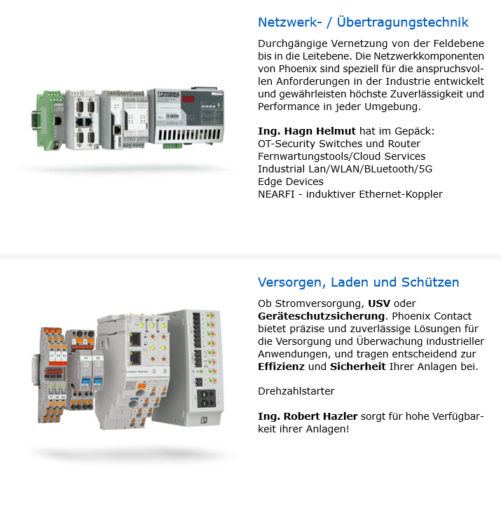 Wir laden Sie herzlich zu einer exklusiven Präsentation der neuesten Produkte von Phoenix Contact ein. Entdecken Sie wegweisende Technologien und tauschen Sie sich mit Fachkollegen über aktuelle Trends und Lösungen für Maschinenbau, Schaltschrankbau und Automation aus.
